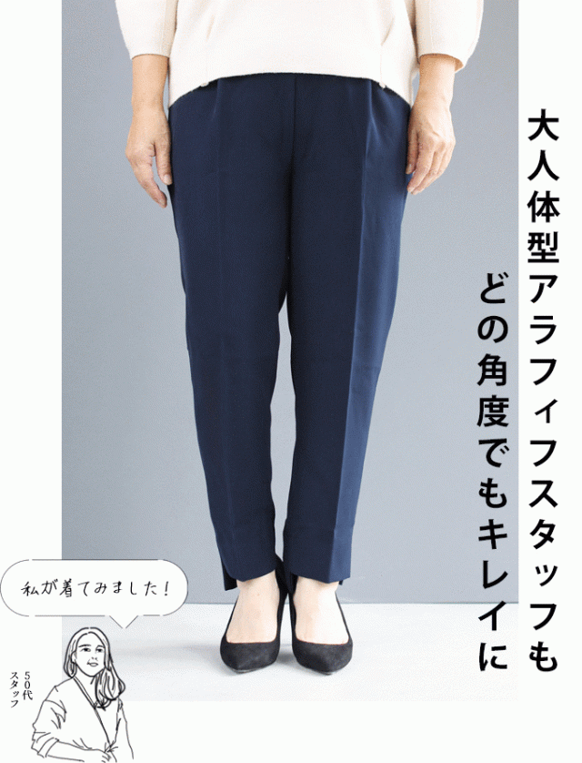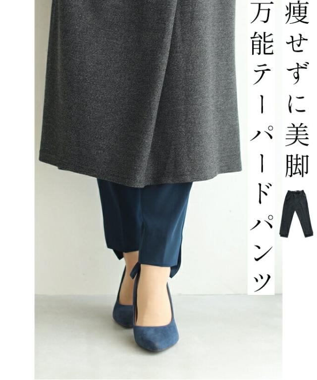 【閉店SALE】 痩せずに 美脚! 万能 テーパード パンツ w67885-nv cawaii ウエストゴム レディース センタープレス タック ストレッチ レギパン ハイウエスト 大きいサイズ シンプル 無地 オフィス 体型カバー 50代 60代 40代 母の日