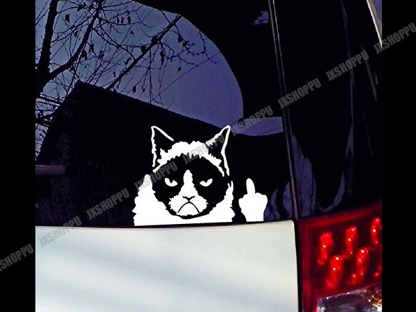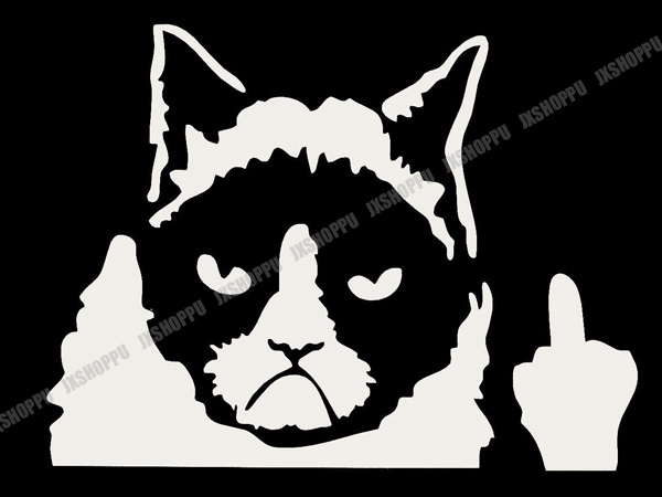 車用 カッティングステッカー [中指を立てたネコ] シルバー 光沢 防水 カーアクセサリー 外装 ドレスアップ 改造 バイク 汎用 送料無料