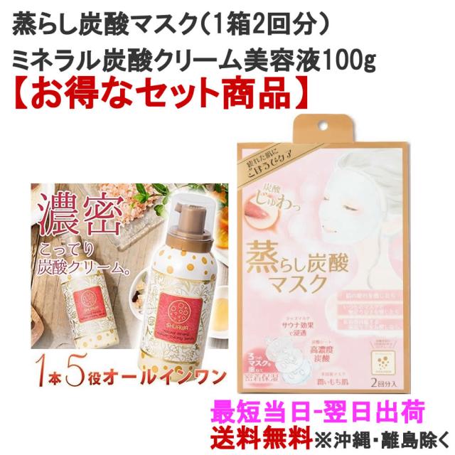 SHUAWA ミネラル炭酸くりーむ美容液 100g SHUWABON ディープ蒸らし炭酸マスク 2回分入 セット商品 オールインワン