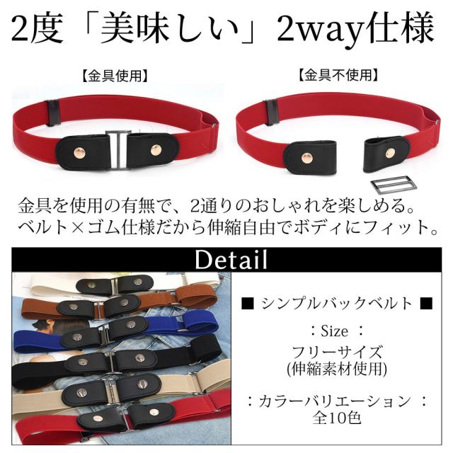 着替えラクラク シンプルバックルベルト ゴムベルト レディース メンズ