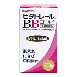 本品は肌あれ・にきび・口内炎の緩和と疲れた時に効果があります。ビタミンB2が、細胞の代謝に作用して、肌トラブルなど、皮膚・粘膜の傷みを改善します。
