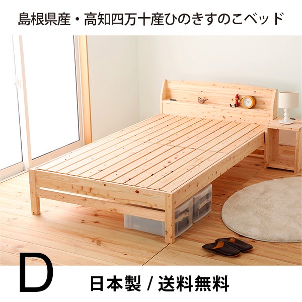日本製桧すのこベッド ダブル ひのき 棚付 島根県産高知四万十産桧 すのこベッド 通気性 ウッドデザイン賞受賞 (TCB233-D 7023303)