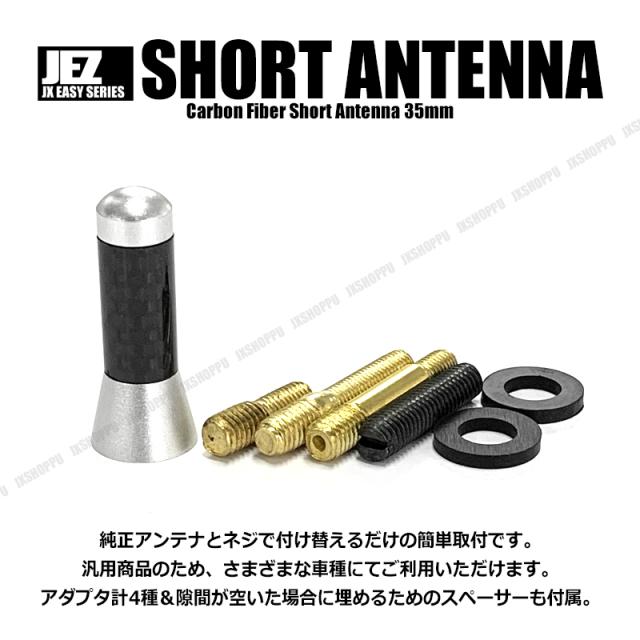 カーボンショートアンテナ [35mm] [シルバー] ネジ径 M5 M6 リアル アンテナ エクステリア スペーサー付属 車載 汎用 外装 送料無料