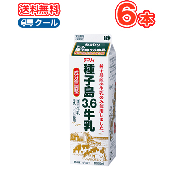 デーリィ 種子島3.6牛乳 1000ml×6本入【クール便】送料無料〔南日本酪農 種子島産 ミルク クール便 乳製品 生乳 〕