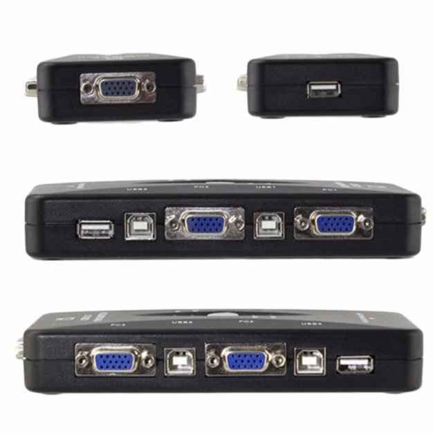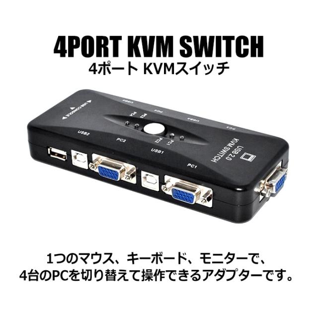 1組のキーボード、マウス、モニターで4台のPCを切り替え操作 KVMスイッチ ボタン1つで簡単操作 VGA CPU切替器 複数 便利 快適 送料無料