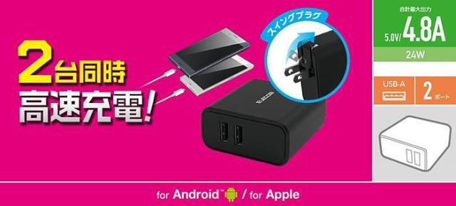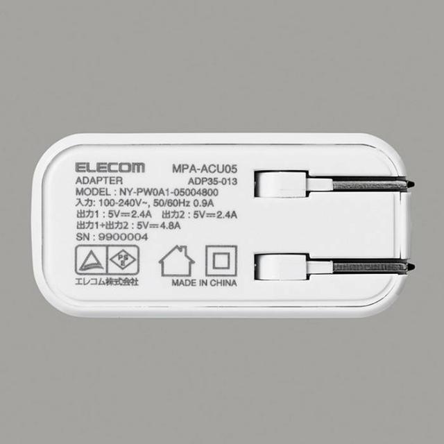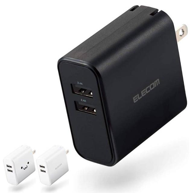 即納 代引不可 スマートフォン/タブレット用 AC充電器 USB充電器 24W USB-A 2ポート 2台同時 高速充電 エレコム MPA-ACU05