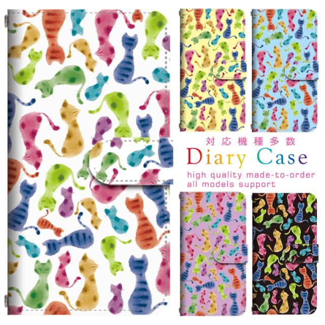 スマホケース 手帳型 多機種対応 カメラホール搭載 ストラップホール付き カード収納 ベルト付き 猫 水彩風 カラフル アニマル ネコ ねこ 携帯ケース 携帯カバー スマホカバー おしゃれ 手帳型スマホケース 手帳型ケース 手帖型 てちょう 全機種対応