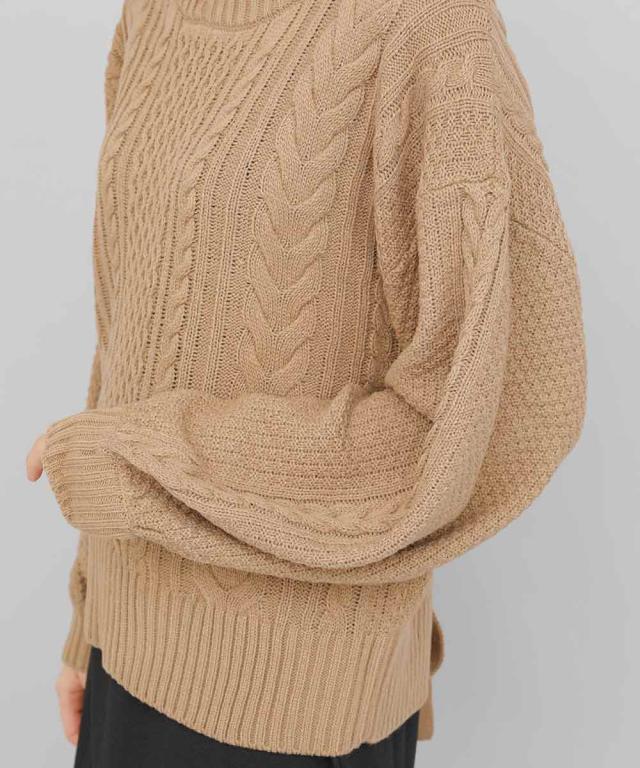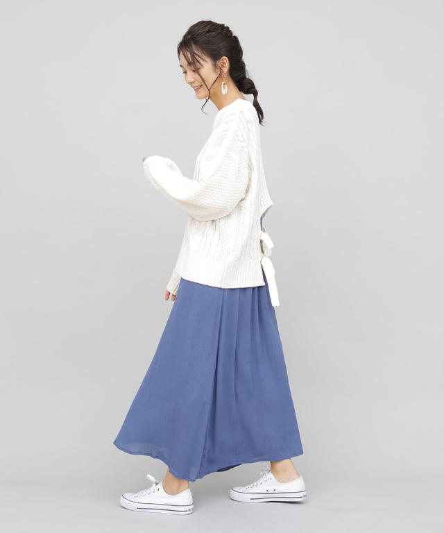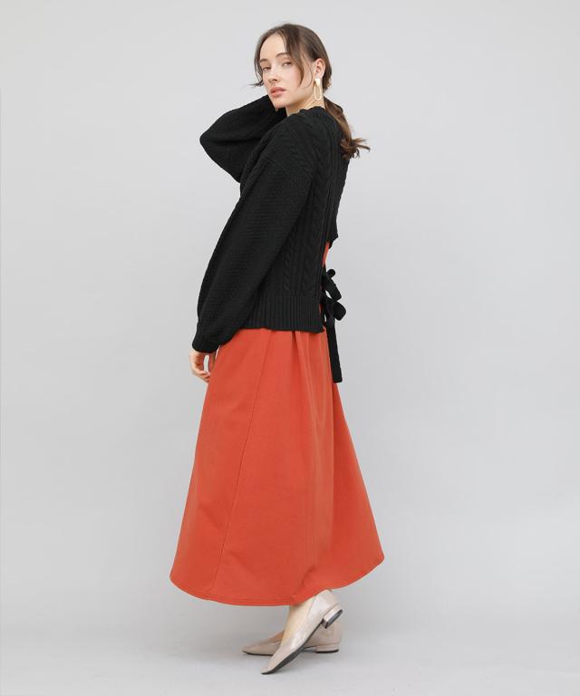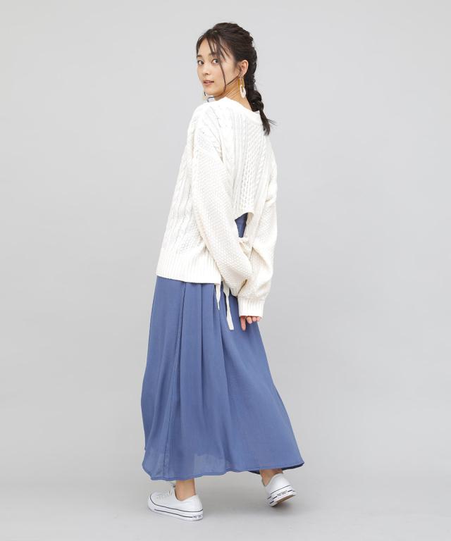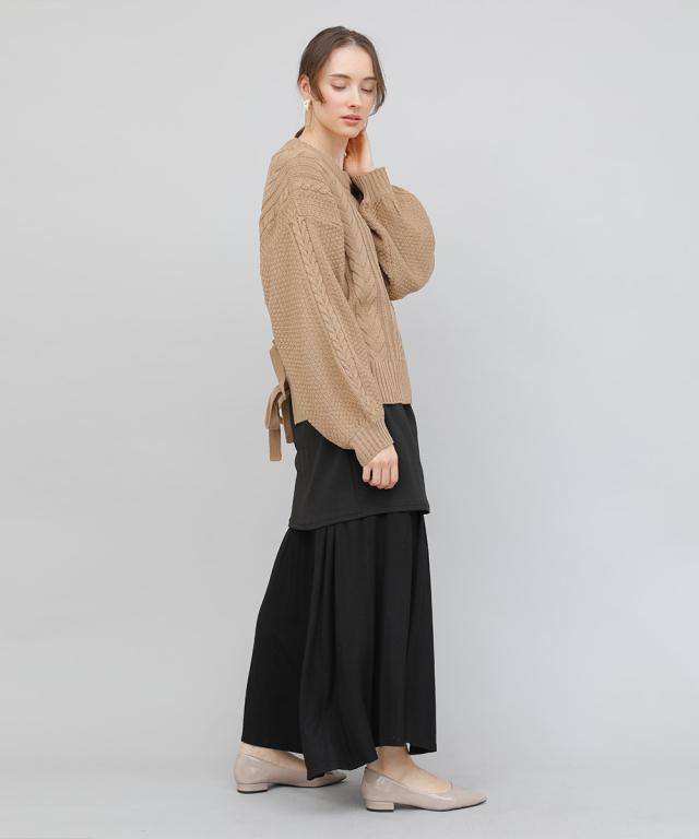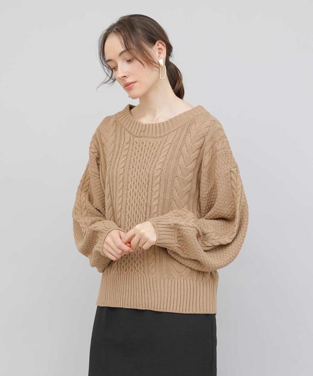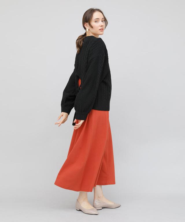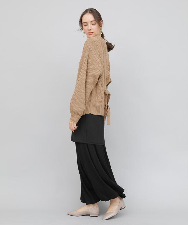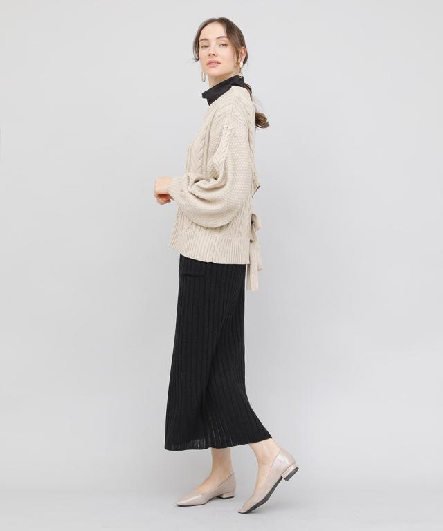 バックデザインケーブルニット ケーブルニット レディース セーター ニット 長袖 秋冬 リボン スリット ケーブル 【BELL】