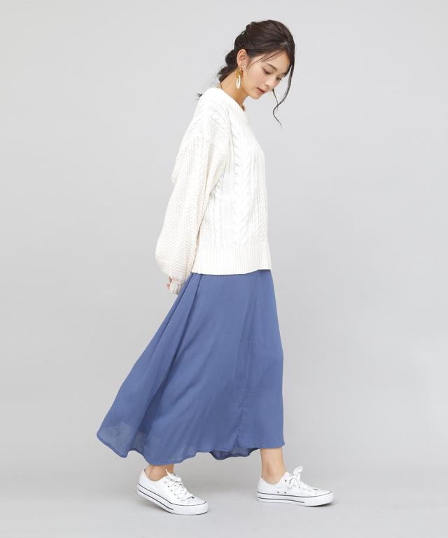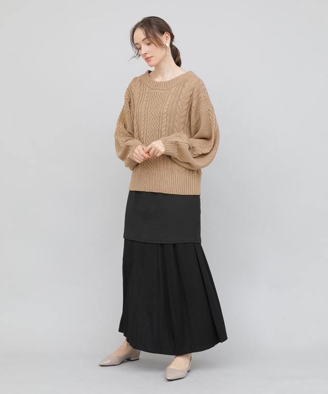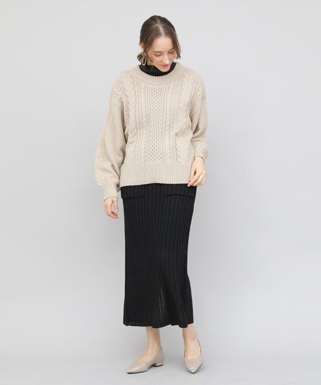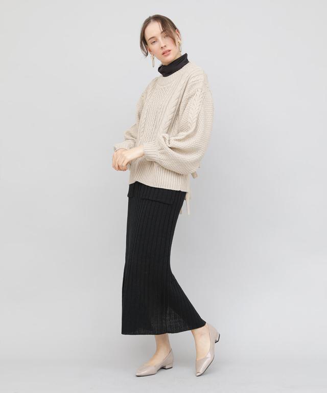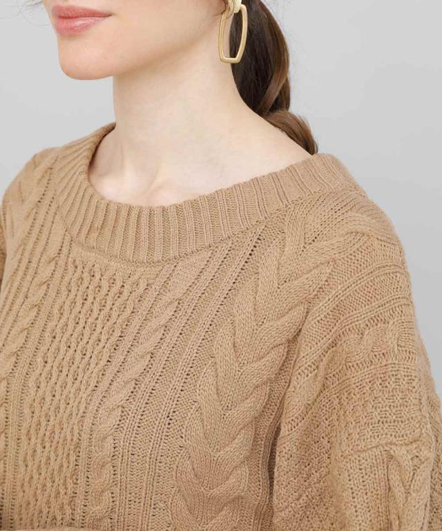 表情豊かなケーブルニットにバックスタイルオープンなスタイル。