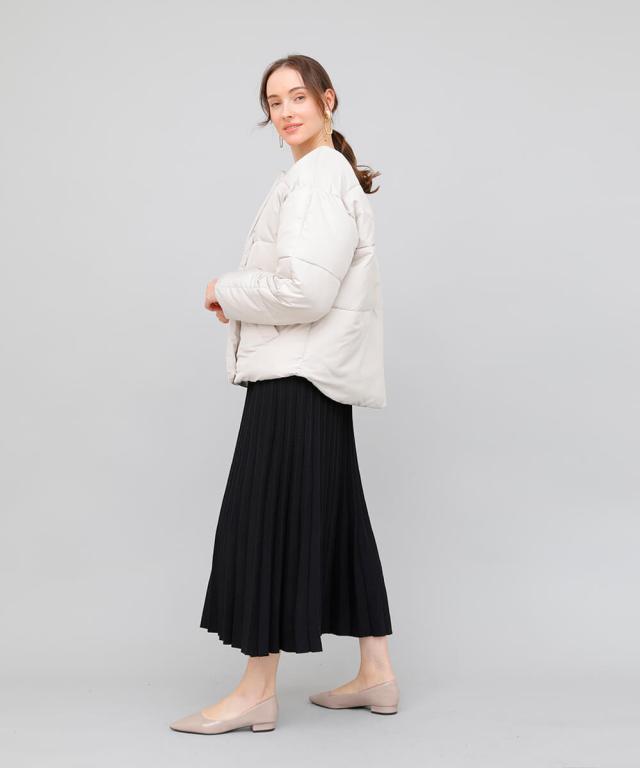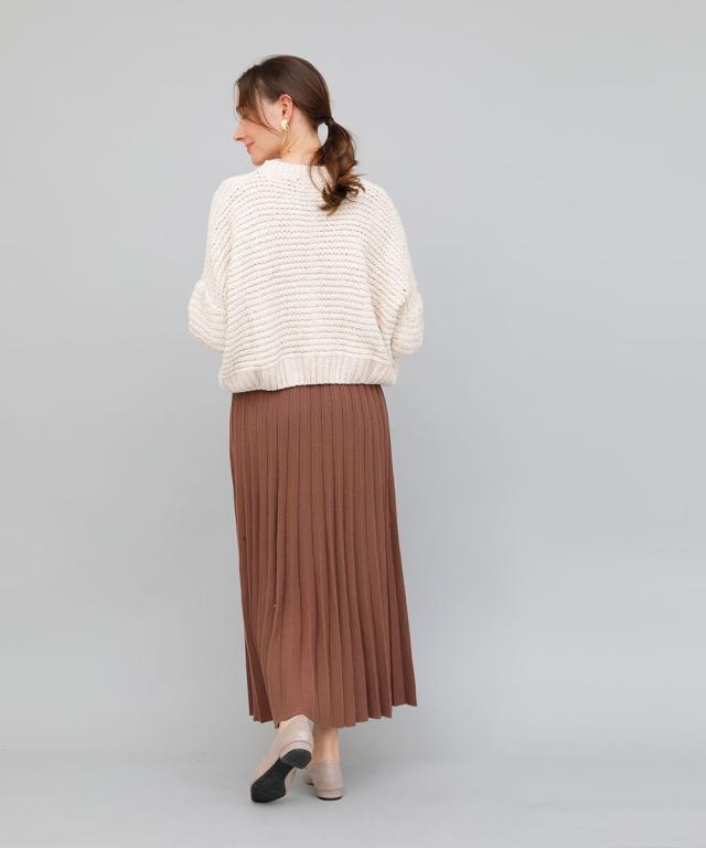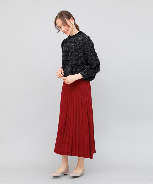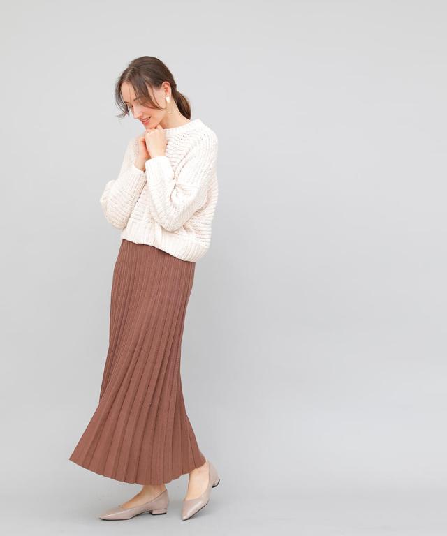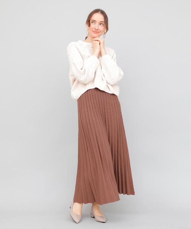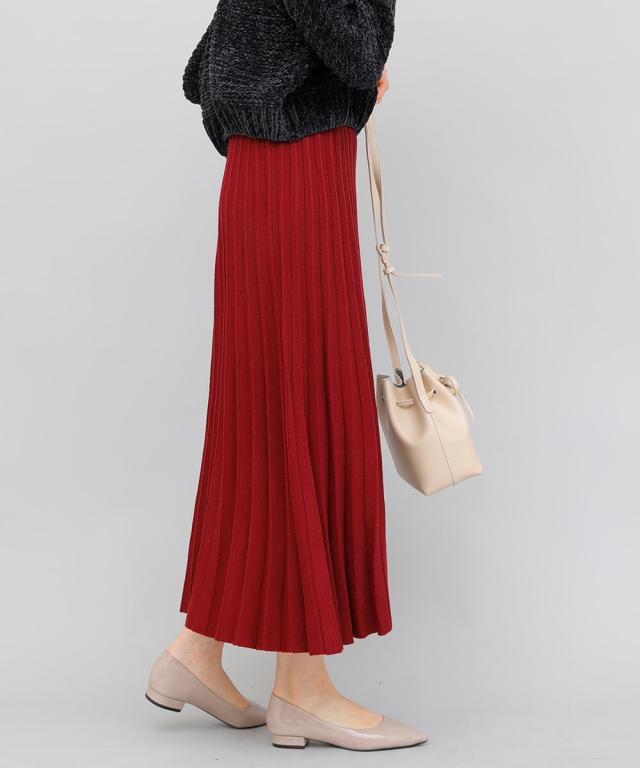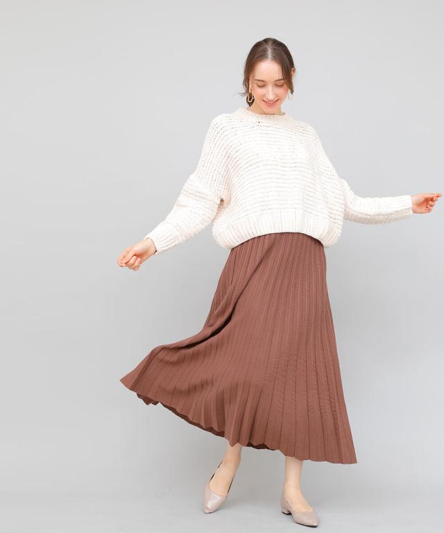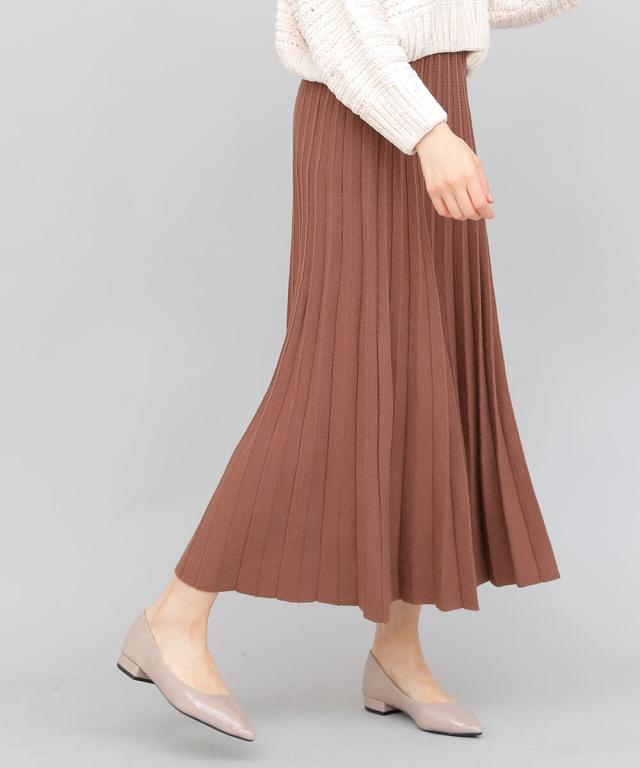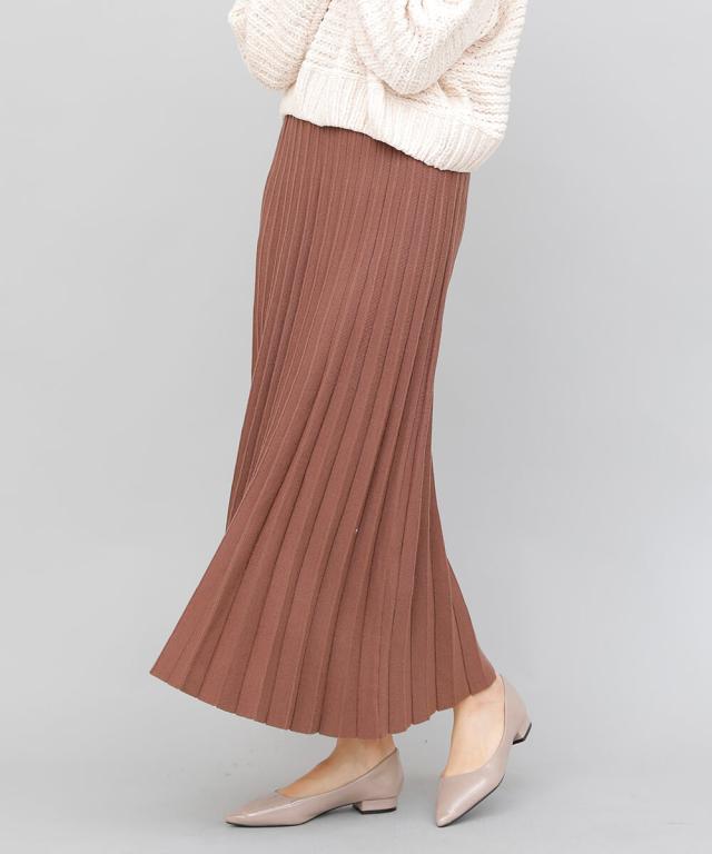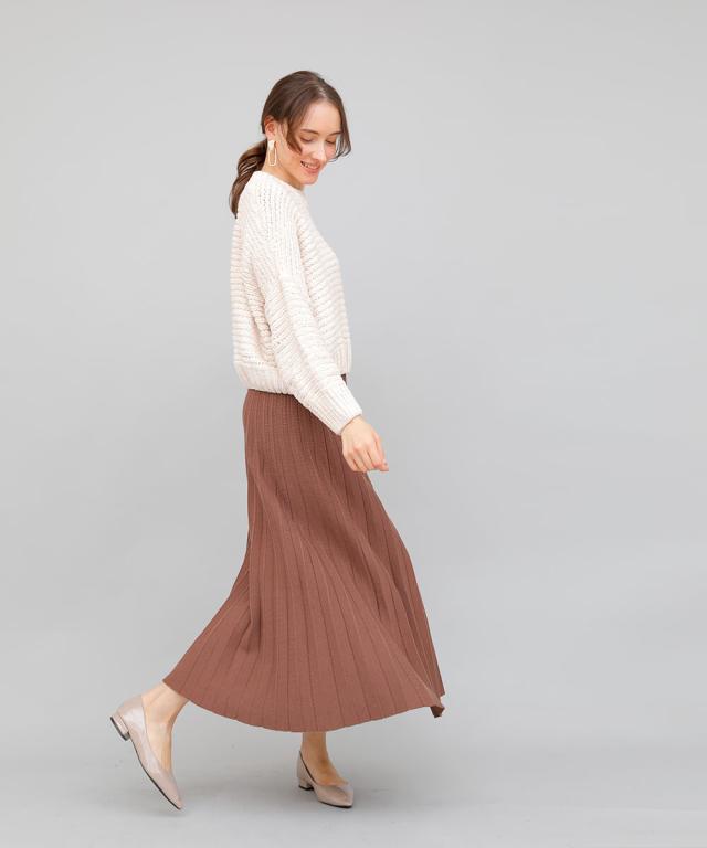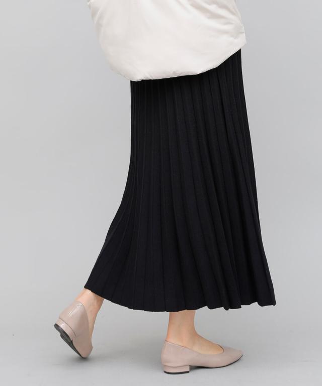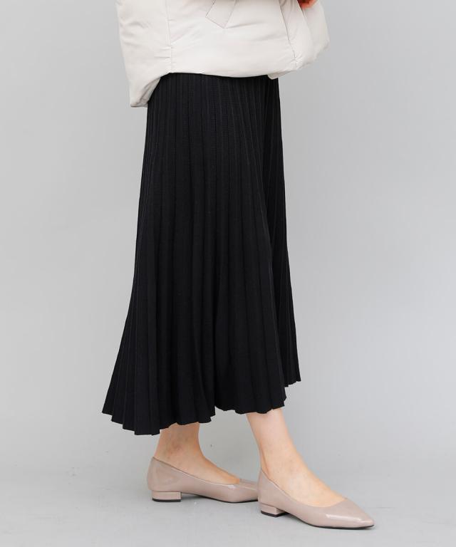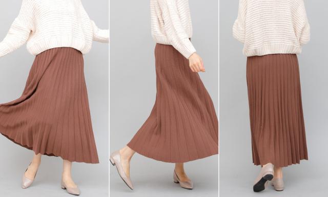 立体的なプリーツで裾に向かってナチュラルに広がるロングプリーツスカート。