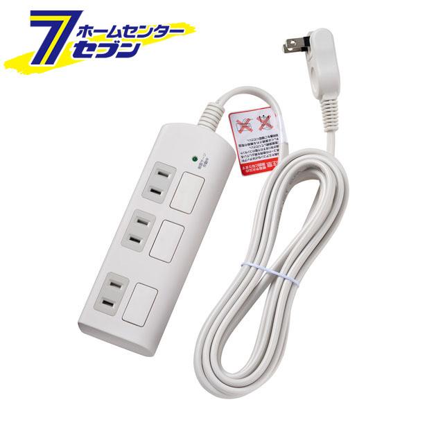 エルパ 耐雷フラットスイッチ付タップ 3個口 3m WBS-LS303F(W) ELPA