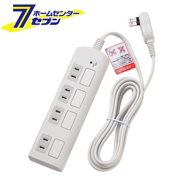 エルパ 耐雷フラットスイッチ付タップ 4個口 2m WBS-LS402F(W) ELPA
