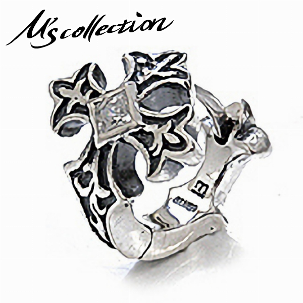 エムズコレクション シルバー925 クロス ホワイトジルコニア フープ ピアス 1P 片耳用 シルバーピアス CZ ユニセックス プレゼント 十字架 ピアス メンズ 男性用 片耳 ブランド msコレクション