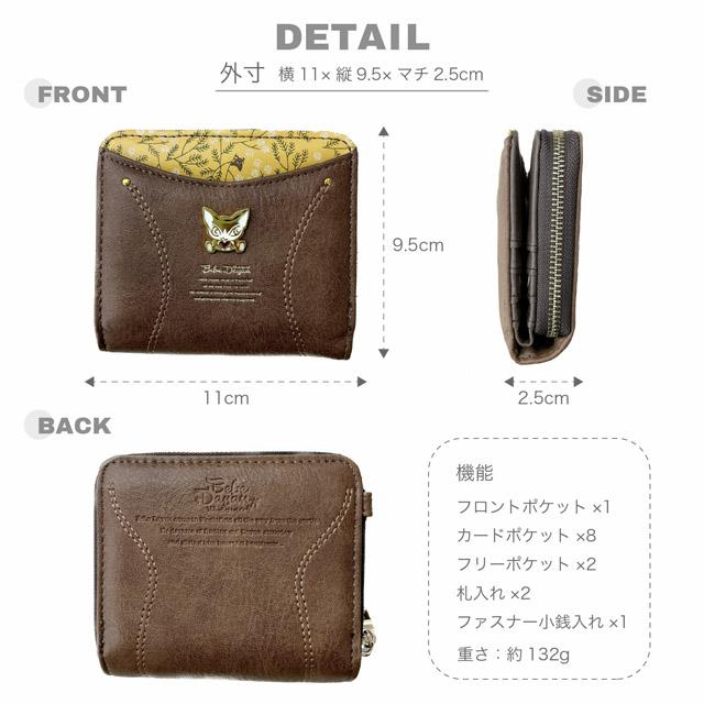 【ラスト1点で終了】財布 猫 キャット 小 二つ折り ミニ コンパクト 小銭入れ べべダヤン 猫柄 ラウンドファスナー カードケース レディース