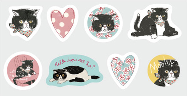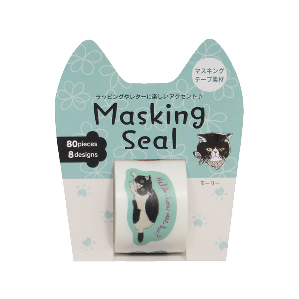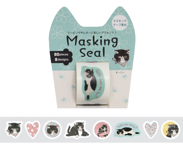 マスキングシール モーリー ( マスキング シール ねこ 貼ってはがせる マステ 猫 ネコ 8柄 80枚 ワルねこ ボスねこ 手描き風 ハート 日本製 )