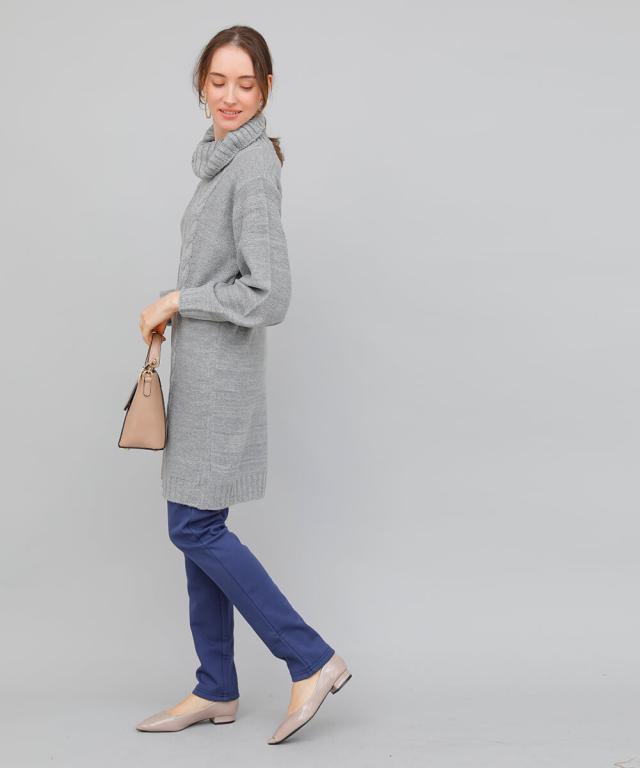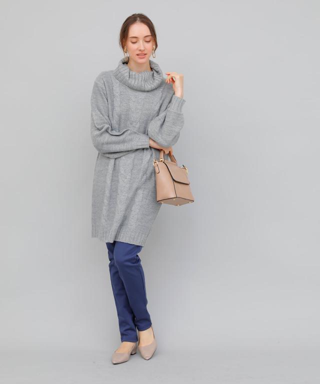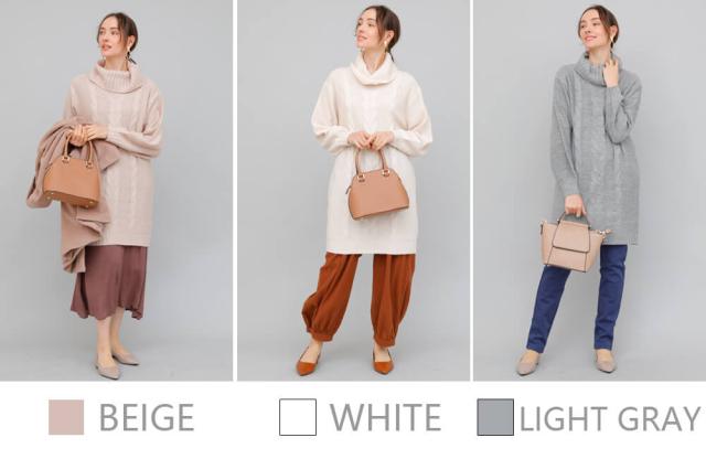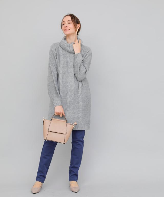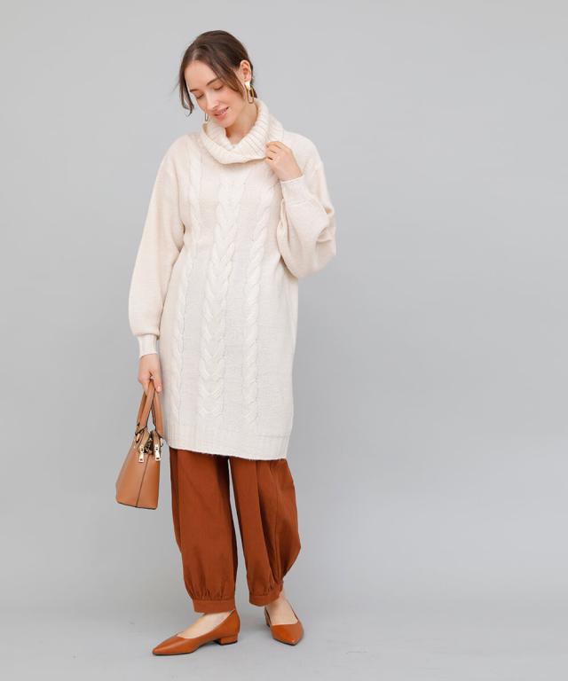 ケーブルニットワンピース ニット ワンピース ニットワンピース 長袖 レディース 秋冬 チュニック チュニックワンピース タートルネック ニット リブ 秋 冬 カジュアル 休日 新作【BELL】