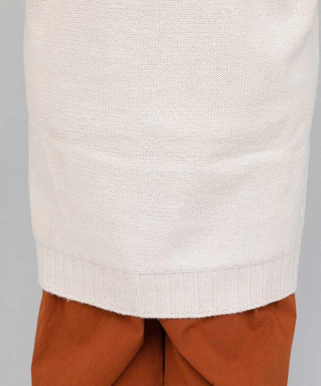小顔効果も期待できちゃうニットワンピース。ボトムスを合わせても、フレアなプリーツスカートにも相性◎