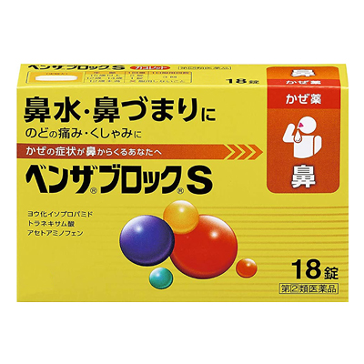アセトアミノフェン 900mg、ヨウ化イソプロパミド 6mg、d-クロルフェニラミンマレイン酸塩 3.5mg、トラネキサム酸 420mg、ジヒドロコデインリン酸塩 24mg、dl-メチルエフェドリン塩酸塩 60mg、無水カフェイン 75mg、ヘスペリジン 90mg
