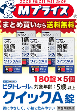 第(2)類医薬品 ビタトレール クイックA錠 小粒 180錠が、5個まとめ買いセットなら送料無料でお得!(解熱鎮痛剤/痛み止め) セルフメディケーション税制対象品