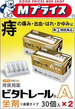 第(2)類医薬品 ビタトレール 痔疾用薬 ビタトレールA 坐剤 (座薬) 30個入×2個セット