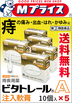 第(2)類医薬品 ビタトレール 痔疾用薬 ビタトレールA 注入軟膏 2G×10個入 が、5個まとめ買いセットなら送料無料でお得!