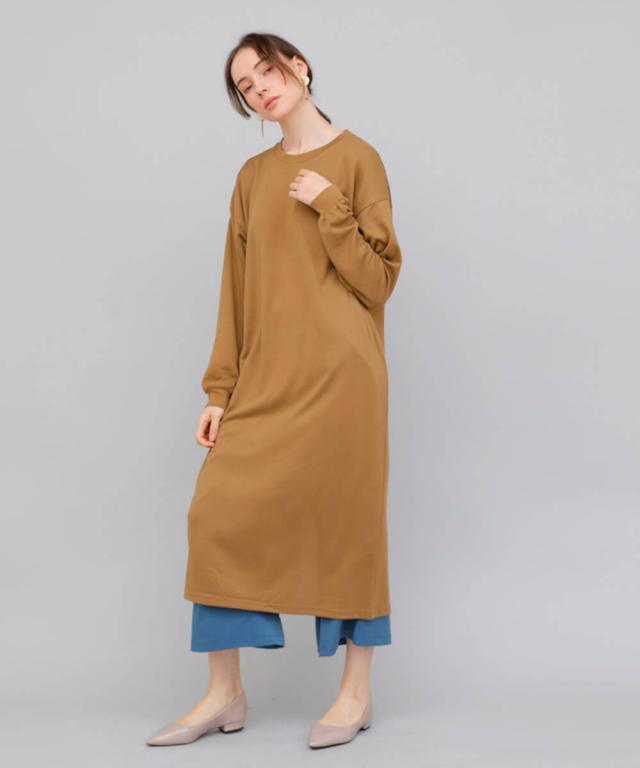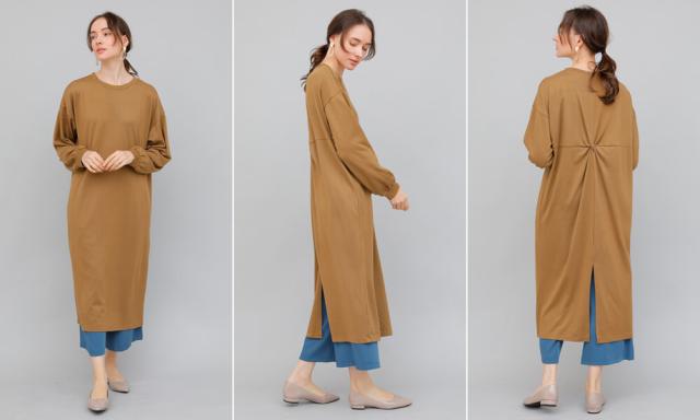 一見フロントから見るとベーシックに見えがちな無地ワンピース、
