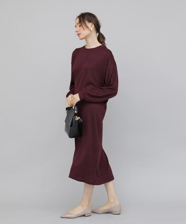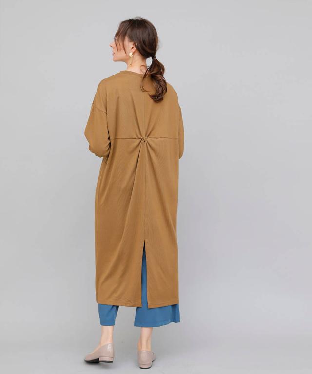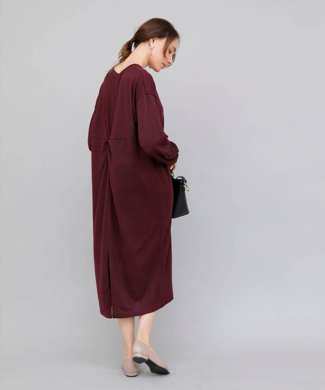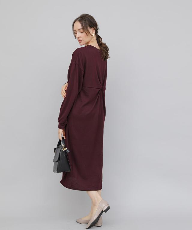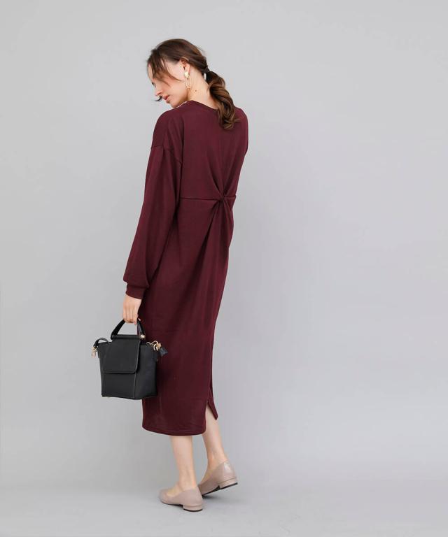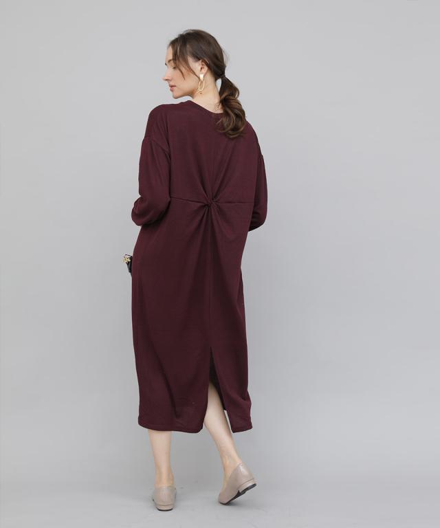 バックツイストワンピース ワンピース 長袖 秋冬 大人 レディース ニットワンピース ロング ねじり ツイスト 秋 冬 カジュアル 休日 新作【BELL】