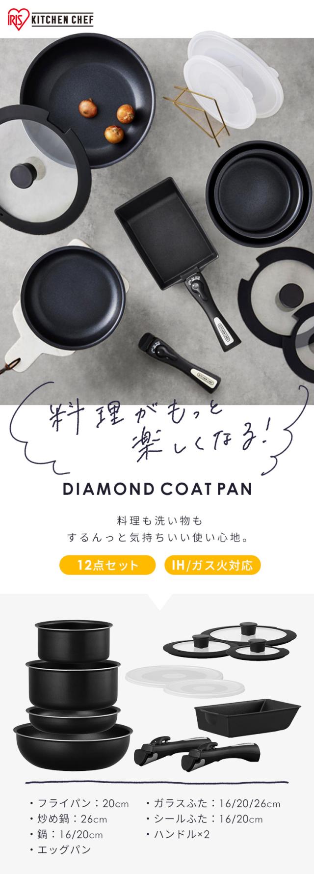 (検索用:フライパンセット 12点 取っ手が取れる フライパン 鍋セット ih ガス 両用 26cm エッグパン 蓋 シリコン おしゃれ ダイヤモンドコート 4967576736190)