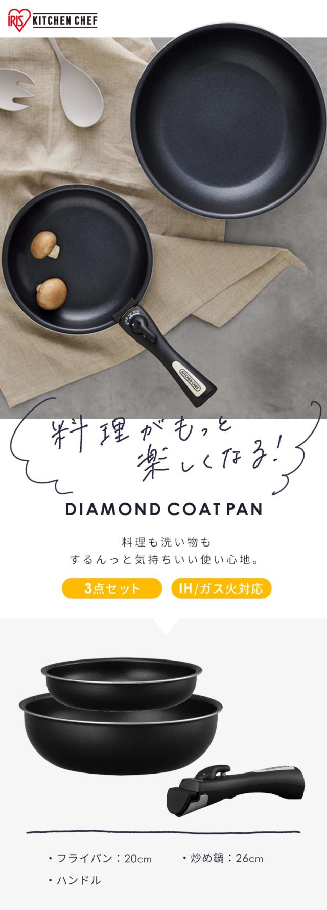 (検索用:フライパンセット 3点 取っ手が取れる フライパン 鍋セット ih ガス 両用 26cm ハンドル 炒め鍋 おしゃれ オーブン ダイヤモンドコート 4967576736169)