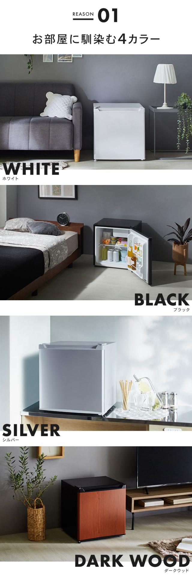 冷蔵庫 一人暮らし 46L 小型 1ドア コンパクト 温度調節 7段階 家庭用 新品 新生活 ひとり暮らし 1人暮らし 単身 リビング 寝室 オフィス 会社 ホワイト ブラック シルバー ダークウッド 小型冷蔵庫 サブ冷蔵庫 ミニ冷蔵庫 セカンド冷蔵庫 PRC-B051D *