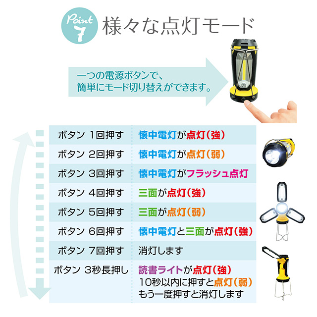 - 買ってから充電器にもなることを知りました。 懐中電灯にもランタンにもなり、ブックライトにもなって、使い方色々出来て良いです。