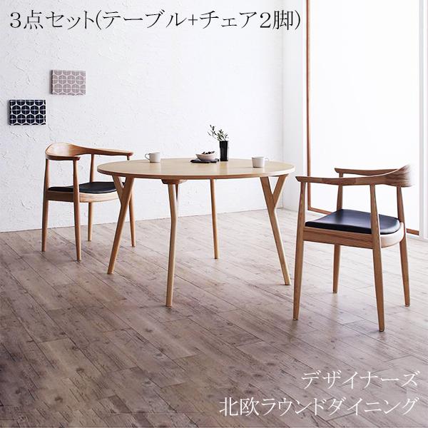 丸くまとまるダイニング 北欧 ラウンドダイニングテーブル 3点セット テーブル直径120+チェア2脚 送料無料 丸い ダイニングテーブルセット おしゃれ 円形 ナチュラル 安い 激安 デザイナーズ 2人掛け 2人用