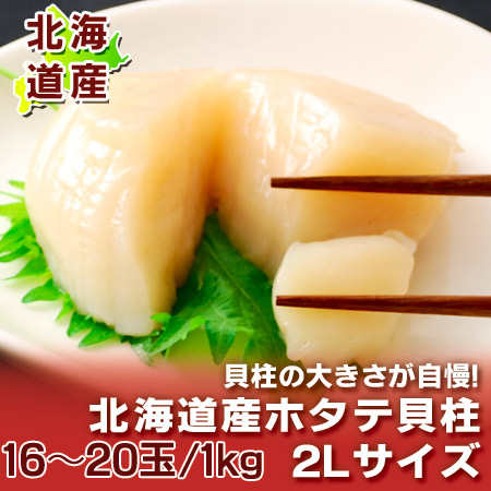 ホタテ貝柱 1kg 送料無料 ほたて貝柱 北海道 帆立貝柱 2Lサイズ 北海道産 ほたて 貝柱 生食用 玉冷 ホタテ 刺し身 箱入 魚介類 シーフード 貝類 ほたて 刺身