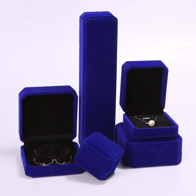 濃紺ブルーのベルベットでできた指輪用リングボックスやピアスやペンダントトップやネックレス、ブレスレットやチョーカーなどを保存や収納できるギフトラッピング用ボックス。
