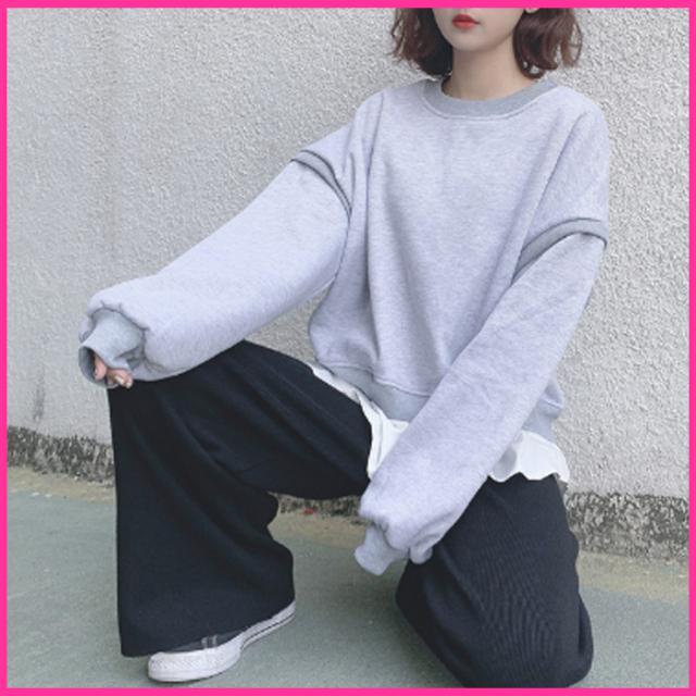 ◇カットソー、トレーナー、ニット、お気に入りのトップスの下に着て気になる部分を可愛く♪隠したレイヤードスタイルが簡単に完成!