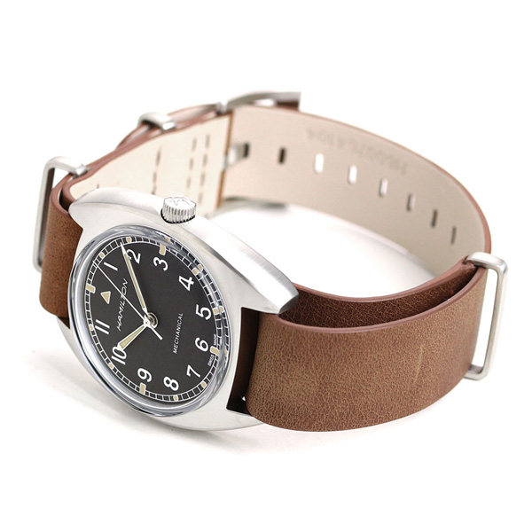 3年保証キャンペーン ハミルトン カーキ アビエーション パイロット パイオニア メカニカル 36mm スイス製 手巻き 腕時計 メンズ H76419531 HAMILTON KHAKI AVIATION PILOT PIONEER MECHANICAL アナログ ブラック×ブラウン 革ベルト ◆手巻きムーブメントH-50を採用し、80時間の標準持続時間を備えた「カーキ パイロット パイオニア メカ」。1973年に英国空軍のために製造されたヴィンテージのミリタリーウォッチを復刻しました。特徴的なダイヤルとラギッドなNATOストラップを備えた真のミリタリースピリットを宿すモデルです。カジュアルからスーツスタイルまでシーンを選ばず腕元を飾ります。 機械式腕時計