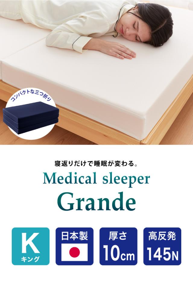 マットレス 日本製 メディカルスリーパー グランデ キング 三つ折り 折りたたみ 硬め 極厚 高反発 国産 ウレタン ニット 145N(代引不可)【送料無料】