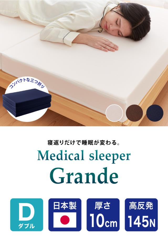 マットレス 日本製 メディカルスリーパー グランデ ダブル 三つ折り 折りたたみ 硬め 極厚 高反発 国産 ウレタン ニット 145N(代引不可)【送料無料】