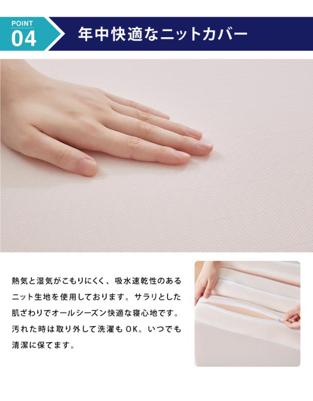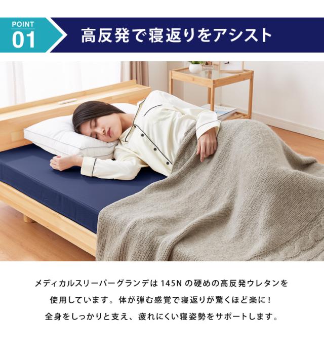 10cmの高反発ウレタンで寝心地アップ。145Nの適度な硬さで体圧分散します。