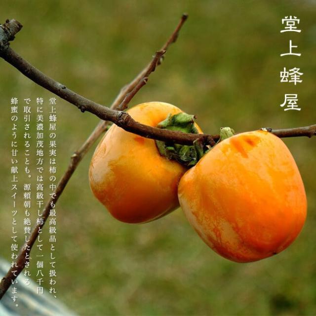 「ほんばどうじょうはちや」と読みます。干し柿として朝廷や将軍家に贈られ、大変もてはやされたので、堂上の名がついたと言い伝えられております。