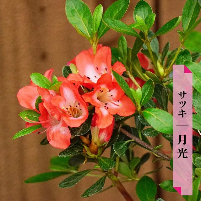 サーモンピンク(淡い朱色)に基部は白色、柔らかな花色のさつきです。花弁の咲きの色は、白やピンク、濃いピンク、紫など様々な色を呈します。様々な花色を楽しめるこの品種ですが、バランスよく色づかせるのはプロでも大変難しいそうです。花の名前の「月光」も移り変わる儚い花色をイメージしたものかもしれませんね。個体差もありますのでどんな花色になるかは育ててみてのお楽しみです!