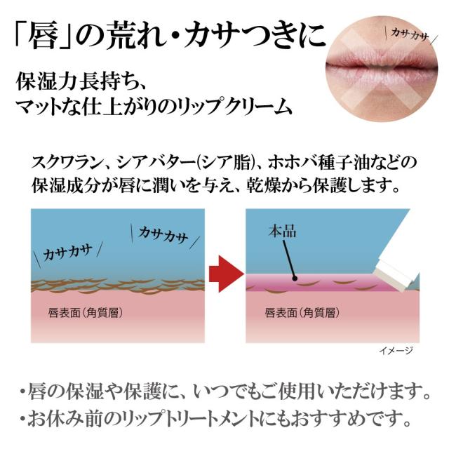 唇の荒れ・カサツキに…保湿力長持ち、マットな仕上がりのリップクリーム。