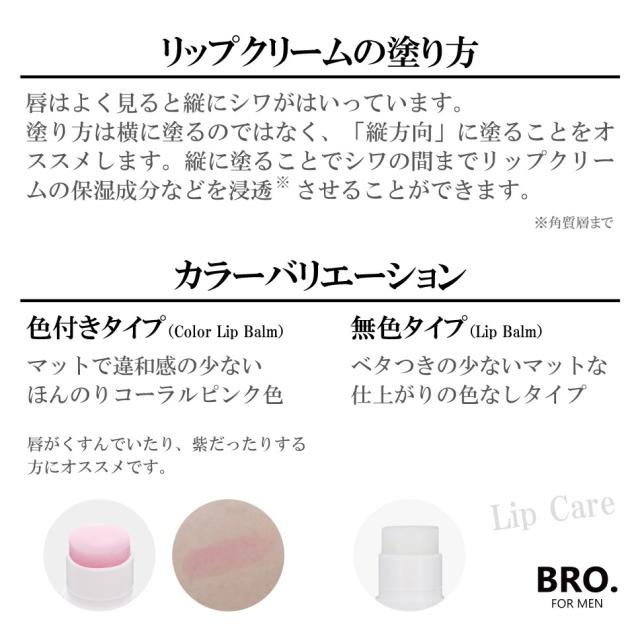 BRO.FOR MEN Lip Balm リップバーム メンズコスメ リップクリーム 唇 カサツキ 保湿力 無色 コーラルピンク