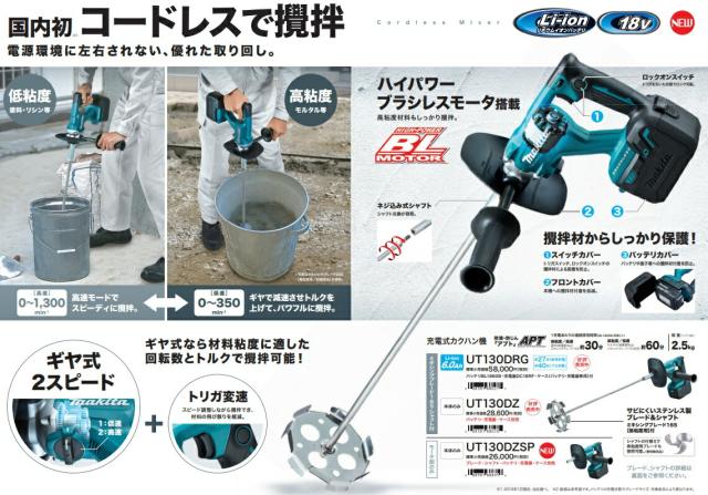 (マキタ) 充電式カクハン機 UT130DZ 本体のみ ミキシングブレード165・シャフト付 コードレスで攪拌 18V対応 makita