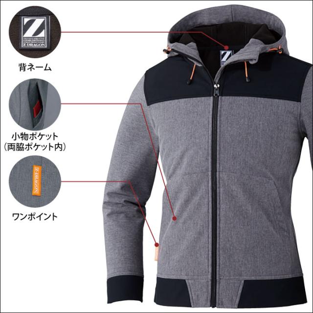 防風ストレッチパーカー 作業服 作業着 自重堂 秋冬 ストレッチ 防風 耐水撥水 おしゃれ ランヤード取付口 パーカー 長袖 jd-78050