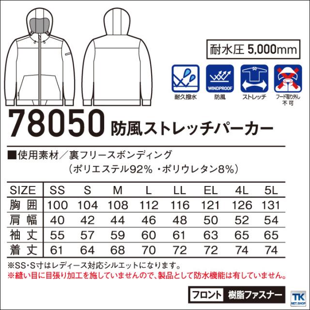 78050 防風 ストレッチ パーカー 作業服 作業着 自重堂 秋冬素材 耐水撥水 おしゃれ ランヤード取付口