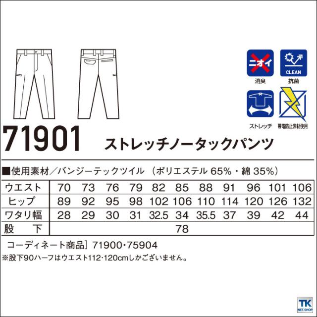 71901 ストレッチ ノータックパンツ 作業ズボン 作業着 作業服 メンズ パンツ ズボン おしゃれ 自重堂 秋冬用 消臭・抗菌 帯電防止