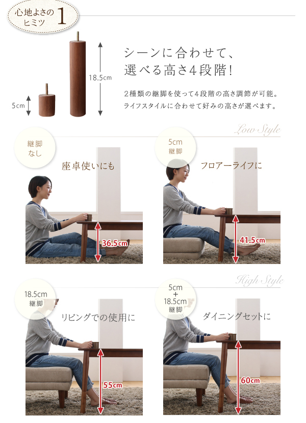 ウォールナットの高級感 ダイニングこたつテーブル W75 送料無料 継脚 おしゃれ 天然木 ウォルナット ハイタイプこたつ 高さ調節 4段階 正方形 2人用