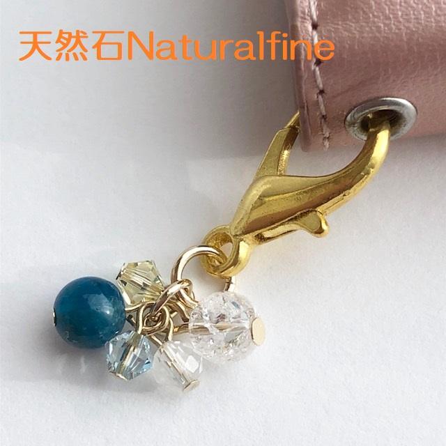 こちらは、ブルーアパタイトの6ミリと願いが叶うと言われているクラック水晶のイヤホンジャックです。