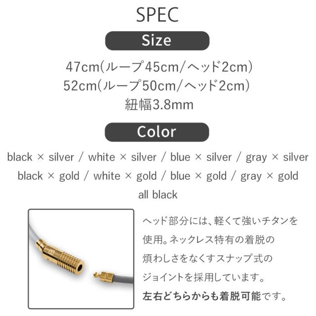 | サイズ | 47cm(ループ45cm/ヘッド2cm) 52cm(ループ50cm/ヘッド2cm) ループ:幅3.8mm |
